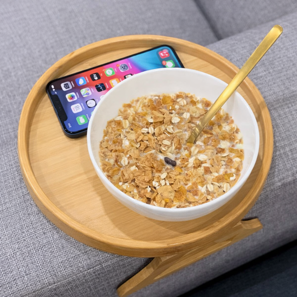 - This wooden serving board is designed for comfort and convenience while relaxing on the couch.